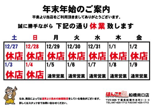 ——-【 はんこ屋さん21 船橋南口店 】——-
